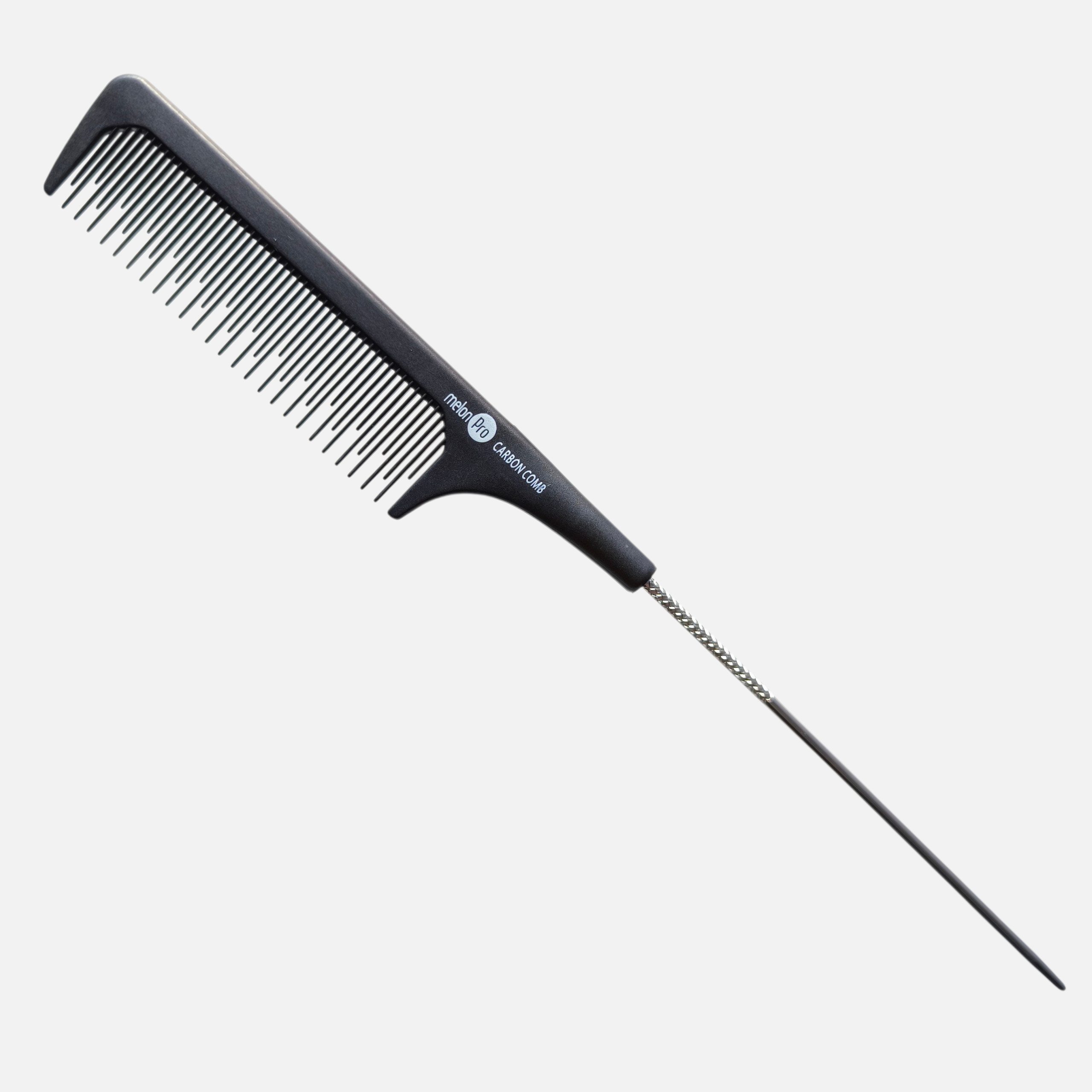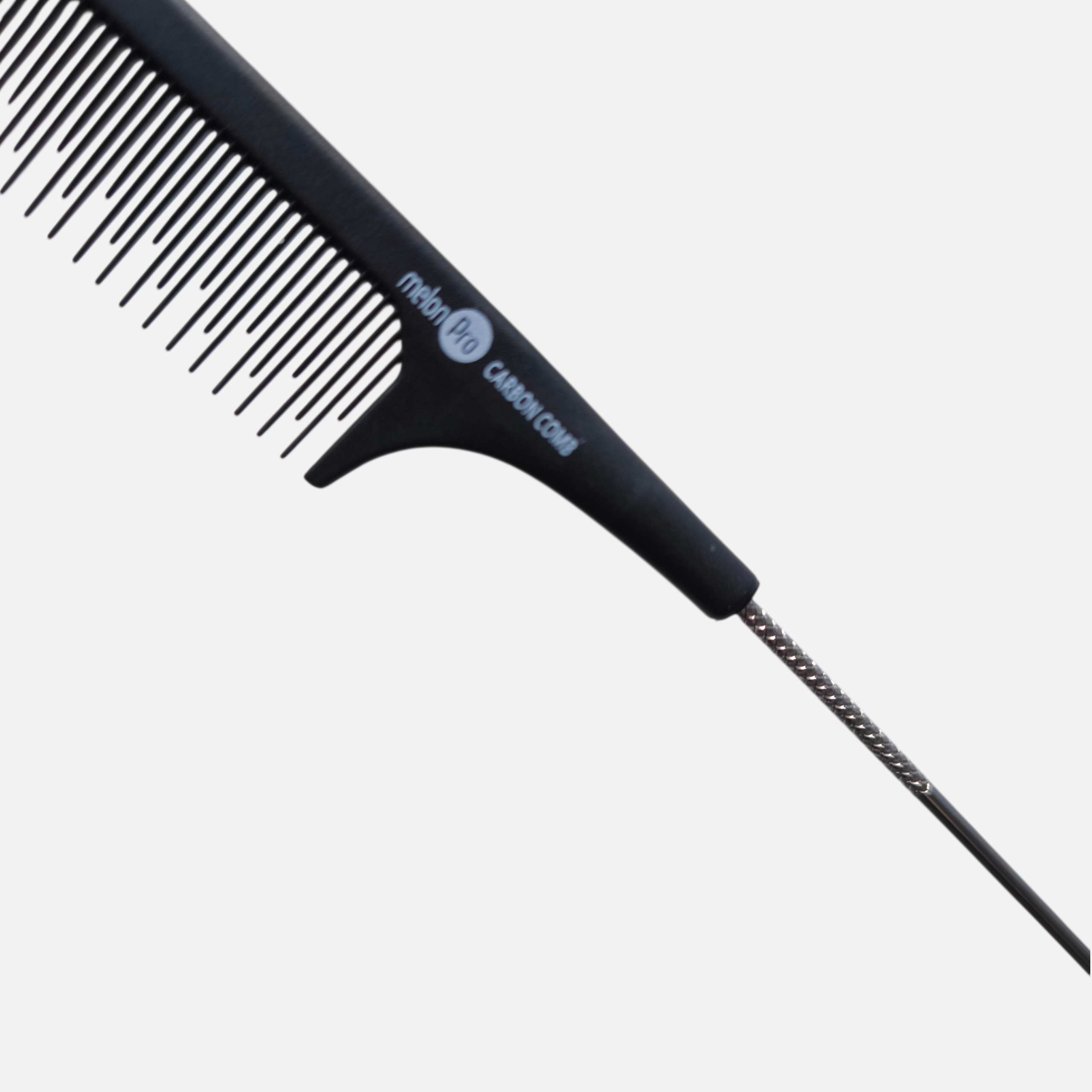 Расческа рабочая Melon Pro CFC-04239 с металлическим хвостиком - идеальный инструмент для причесок, укладок, окрашивания и стрижки. Расческа с хвостиком от Melon Pro выполнена из износостойкого карбона люкс, который не электризует волосы. Длинный металлический хвостик позволяет легко делать ровные проборы и выделять тонкие пряди. Черный цвет и эргономичная форма обеспечивают комфорт в работе. Надежность и точность в одном инструменте.
