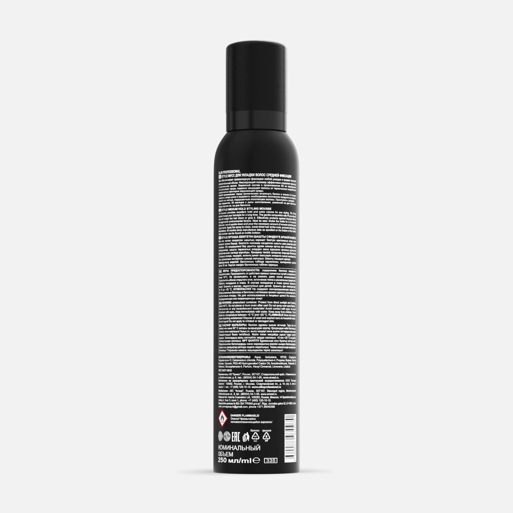 Способ применения: перед применением встряхнуть баллон в течение 2-3 секунд, повернуть вверх дном и выдавить необходимое количество продукта на ладонь. Нанести на чистые, подсушенные полотенцем волосы. Приступить к укладке.