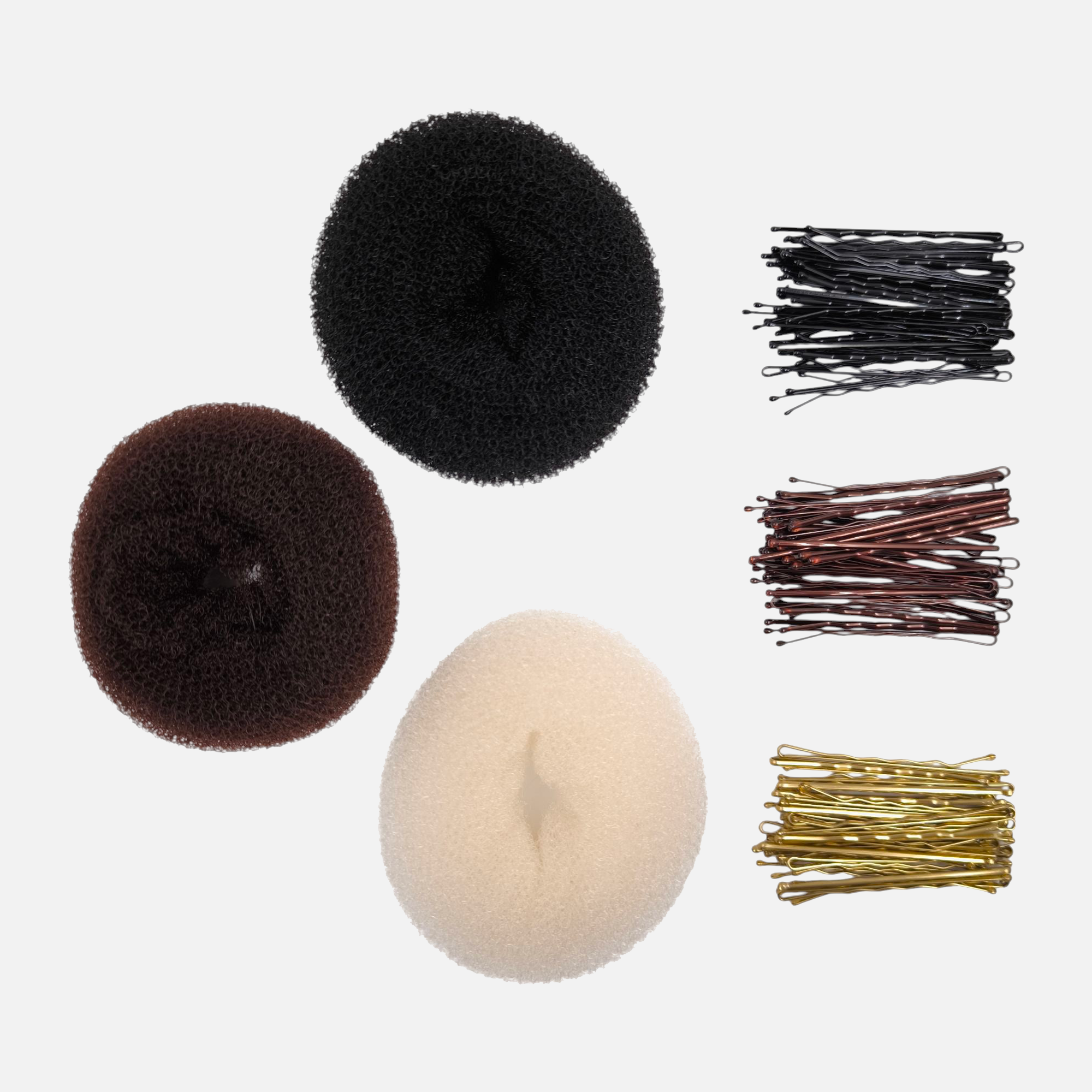 Набор аксессуаров для причёсок и укладок от IPARIKMAHER: это профессиональные качественные товары, с помощью которых Вы легко создадите текстурный пучок, придадите дополнительный объем или сделаете фантазийную причёску на любых волосах. Невидимки от IPARIKMAHER: это крепкие невидимки, которые не прокручиваются, имеют округлые кончики и не цепляют волосы. Очень удобный инструмент при формировании любого типа причёски, они служат для удержания прядей, закалывания чёлки или волос по бокам, а так же для фиксации прядей. Валики от IPARIKMAHER имеют прочную форму и оптимальный размер для создания Ваших задумок с волосами.