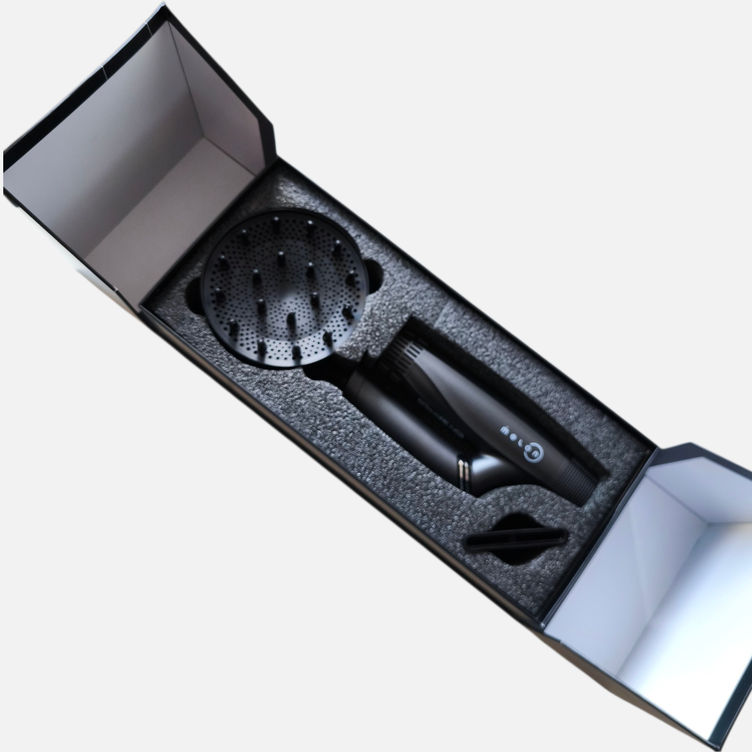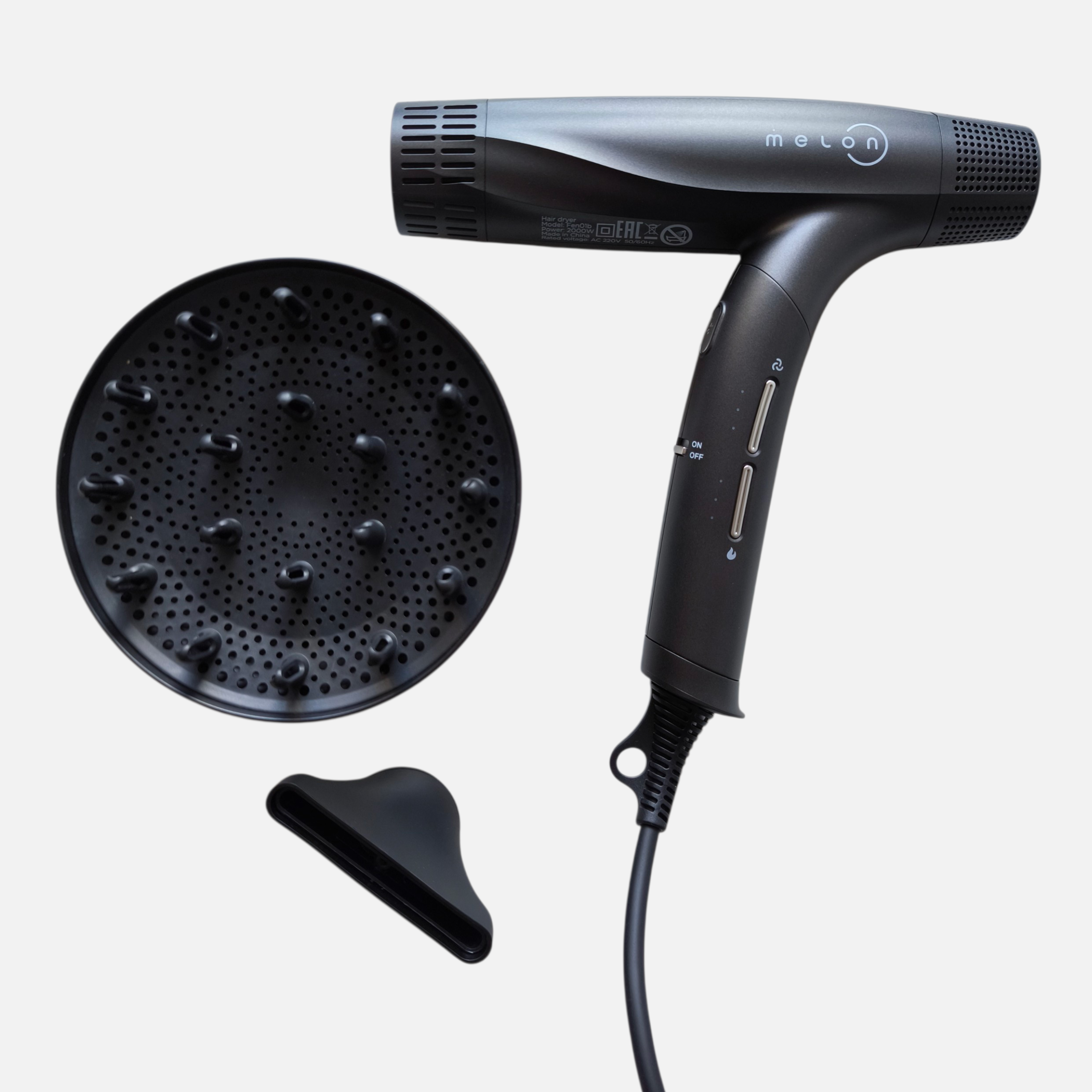 Фен Melon HAG 7 , разработанный с помощью искусственного интеллекта, быстро сушит волосы и снимает статическое напряжение.